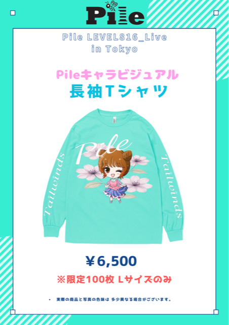 【~物販グッズ発売のお知らせ~】 この度、Pileキャラビジュアル長袖Tシャツの販売が決定しました!